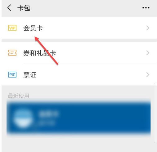 3. 在卡包界面,点击会员卡。