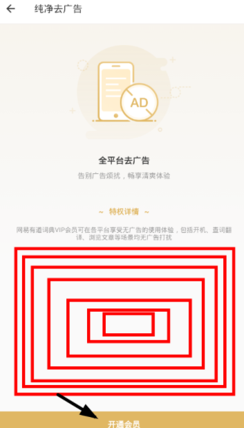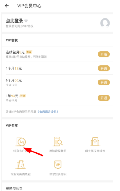 2、在VIP用户中心可以看到,只要您是网易有道词典会员,就可以享受广告服务。到
