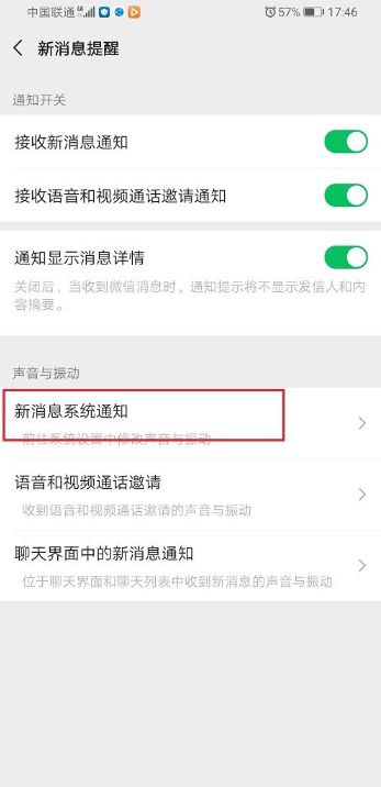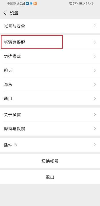第二步,在微信设置中点击新消息提醒。