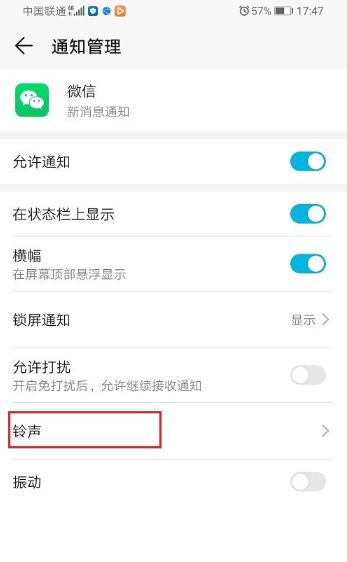 第四步:在微信通知管理界面,点击铃声