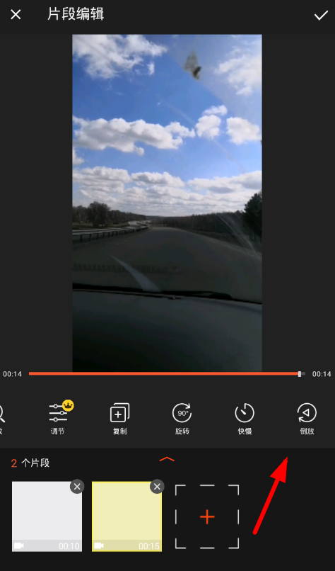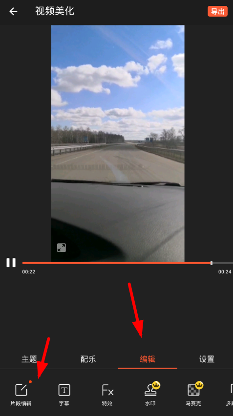 2、用户进入视频编辑页面后,选择下方的“编辑”类别,使用列表中的“片段编辑”功能设置视频倒放效果。到