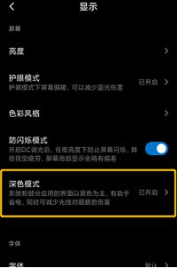 3.然后在显示界面找到“深色模式”功能并打开,将微信置于深色模式。