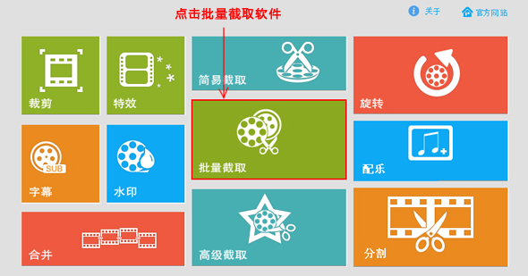 打开GiliSoft Video Editor软件,点击“批量截取”选项,