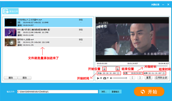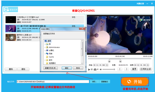 截取视频后,点击下方的“浏览”按钮,会出现弹出框,选择要保存的文件夹位置,点击确定,然后点击“开始”即可输出视频。到