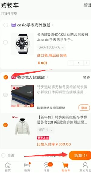 2选择商品后点击结账。