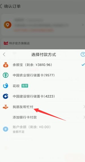 4. 在支付界面点击支付方式,然后点击“请朋友帮忙支付”。