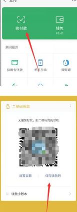 5、然后选择页面红色箭头所指的“收款付款”,再选择页面红色箭头所指的“二维码收款”,然后选择“保存付款码”。