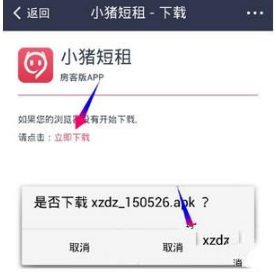 打开小猪短租专用下载页面,会自动弹出是否下载安装文件;