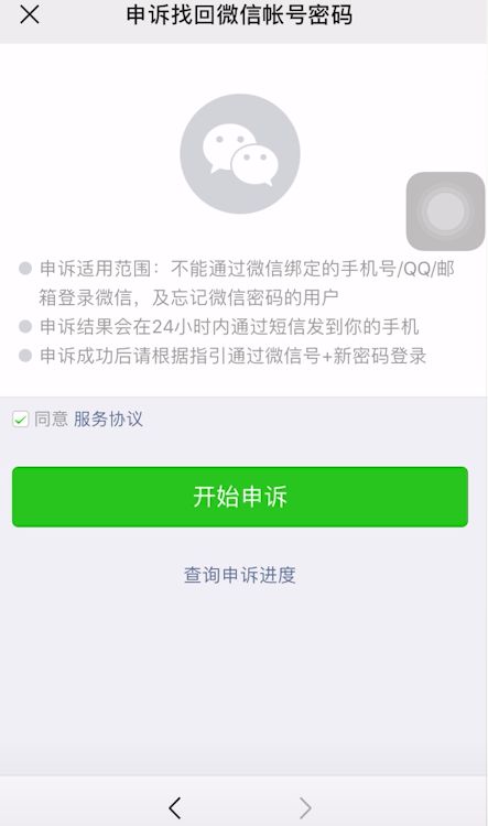 4点击开始申诉,按照系统步骤通过申诉找回微信账号密码。