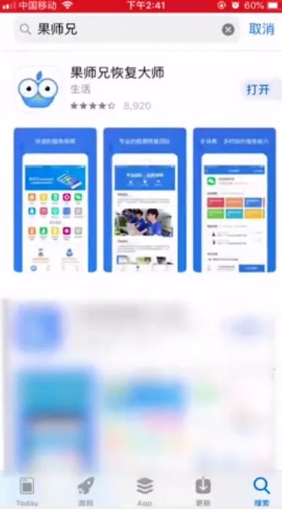 3.打开苹果手机应用商店,搜索并下载郭哥恢复大师。