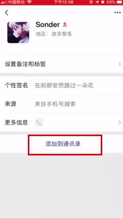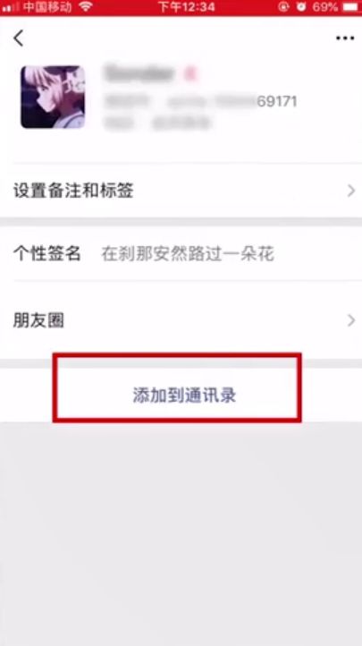 2 找到已删除的微信好友,点击进入个人资料页面,点击“添加到通讯录”。