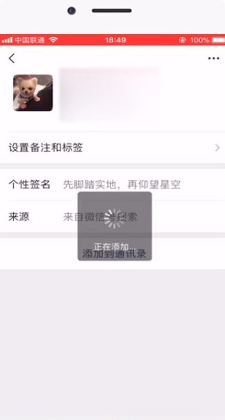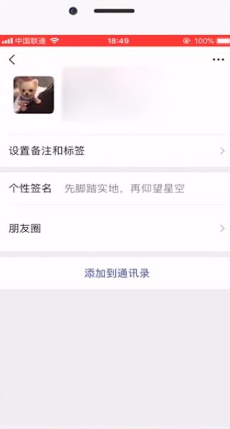 6 找到好友头像点击进入个人资料页面,点击“添加到通讯录”。