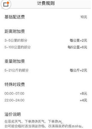 基本运费10元,其余如下图所示。
