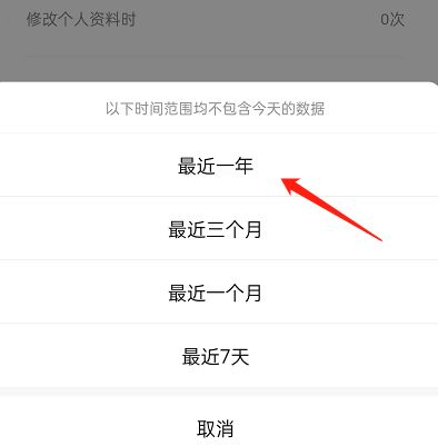 5. 选择一个时间范围,查看该时间范围内的修改次数。