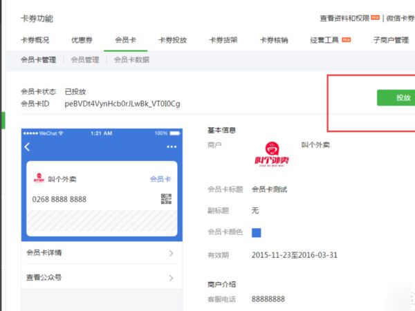 6.审核完成后,会员卡栏内会显示已发货,点击已发货。