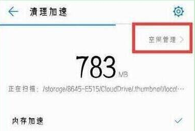 第三步:点击清理加速页面右上角的【空间管理】,