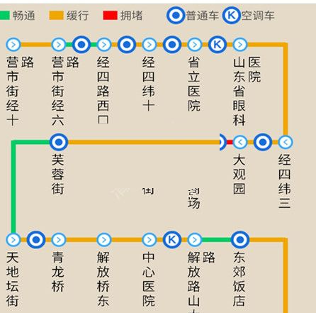 2、在查看公交线路页面,我们可以看到当前的交通状况、全站站名、公交价格等,让用户一目了然;