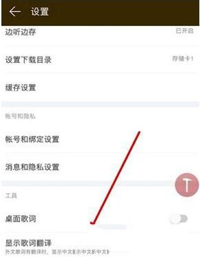 5、进入设置界面后,我们会看到有一个“显示歌词翻译”的自定义开关。