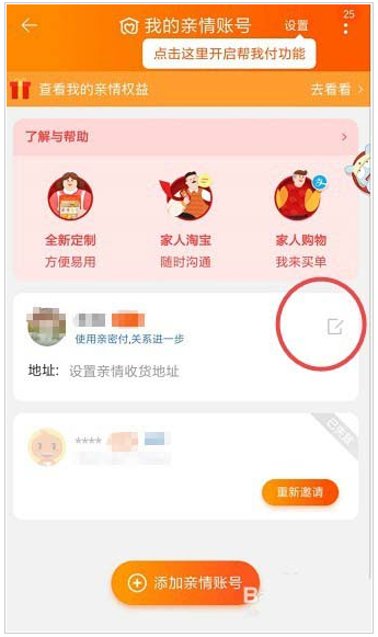 添加和删除淘宝家庭账户