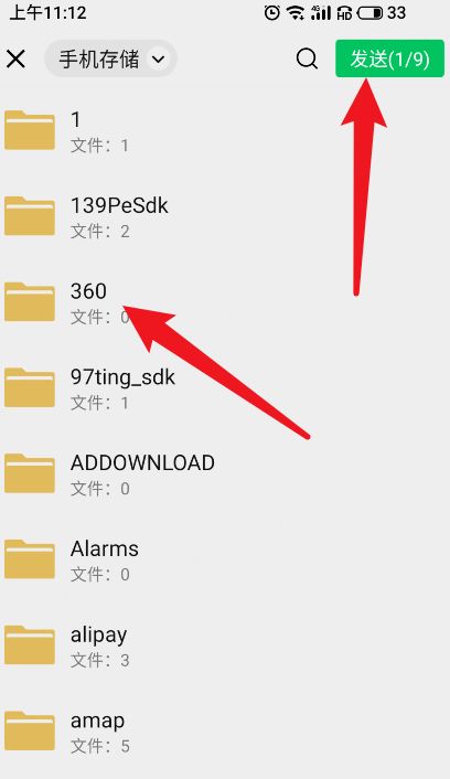 5. 最后,在手机文件夹中找到您要发送的100兆文件,然后单击发送。