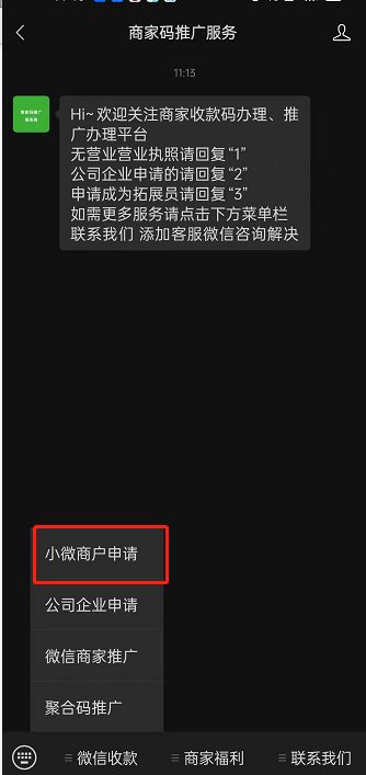 3.点击【小微商户申请】。