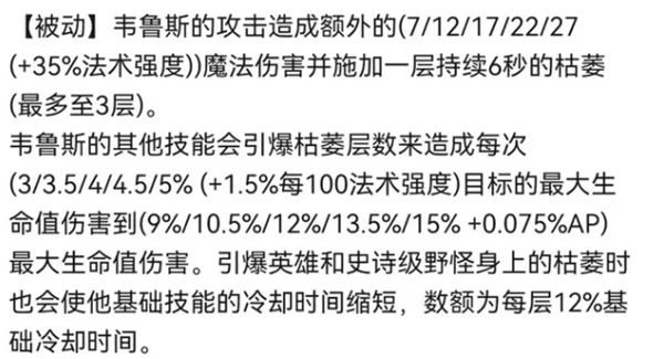 韦鲁斯前期的AP对线强度并不是很高,需要一定的发育才能够受到伤害。