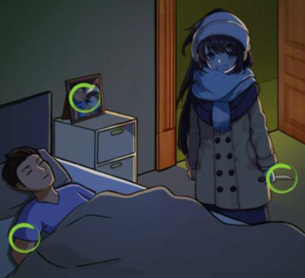1. 在第一个场景中,您可以看到门口的女人。