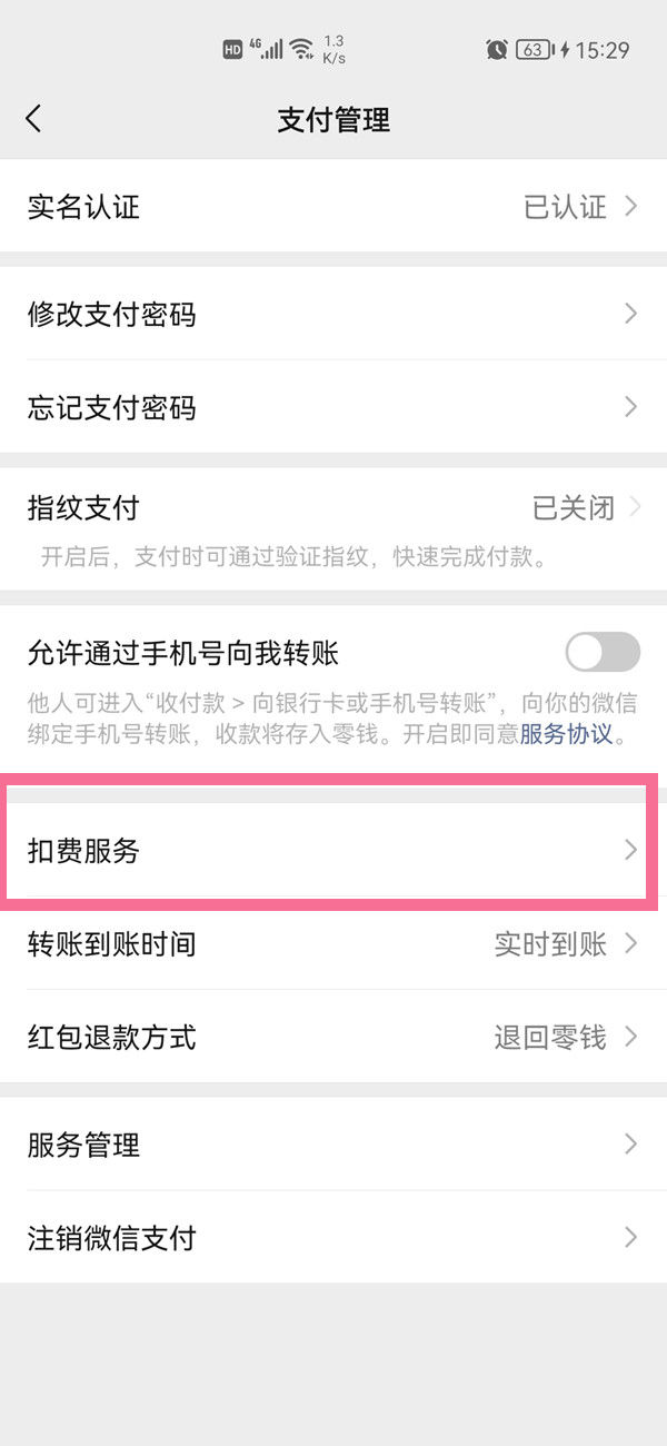 2.点击右上角三点进入支付管理界面,点击【扣费服务】。
