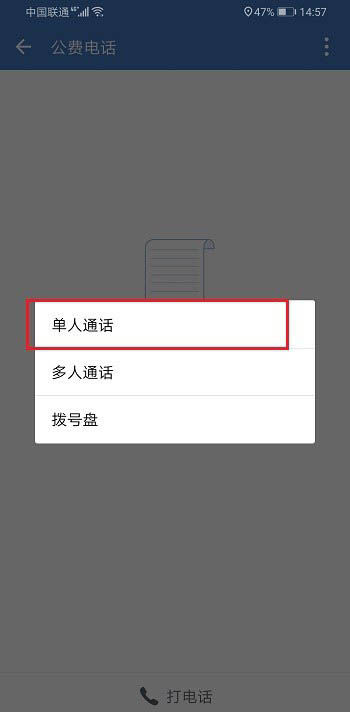 2、接下来我们使用公用电话,打开企业微信,点击公用电话,选择拨打电话。
