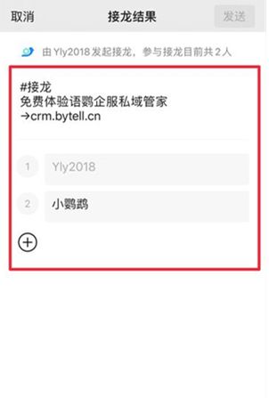 2.点击参与接龙后,点击+按钮编辑信息并发送。