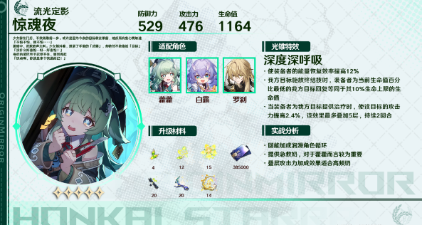 【惊夜】作为哈普的专属光锥,可以为哈普提供稳定的恢复效果,让哈普的前六个动作稳定,而【惊夜】光锥可以为哈普提供急救奶的效果。弥补了Hop Hop的短暂急救,所以是非常适合Hop Hop的光锥。