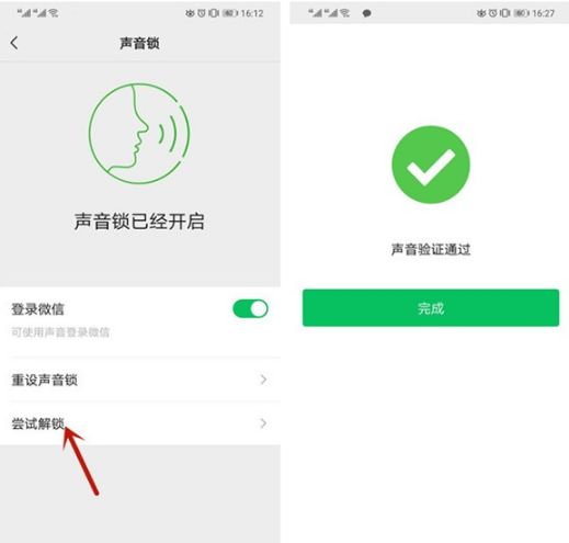 6、点击尝试解锁,读出号码,声音提示验证通过,点击完成。
