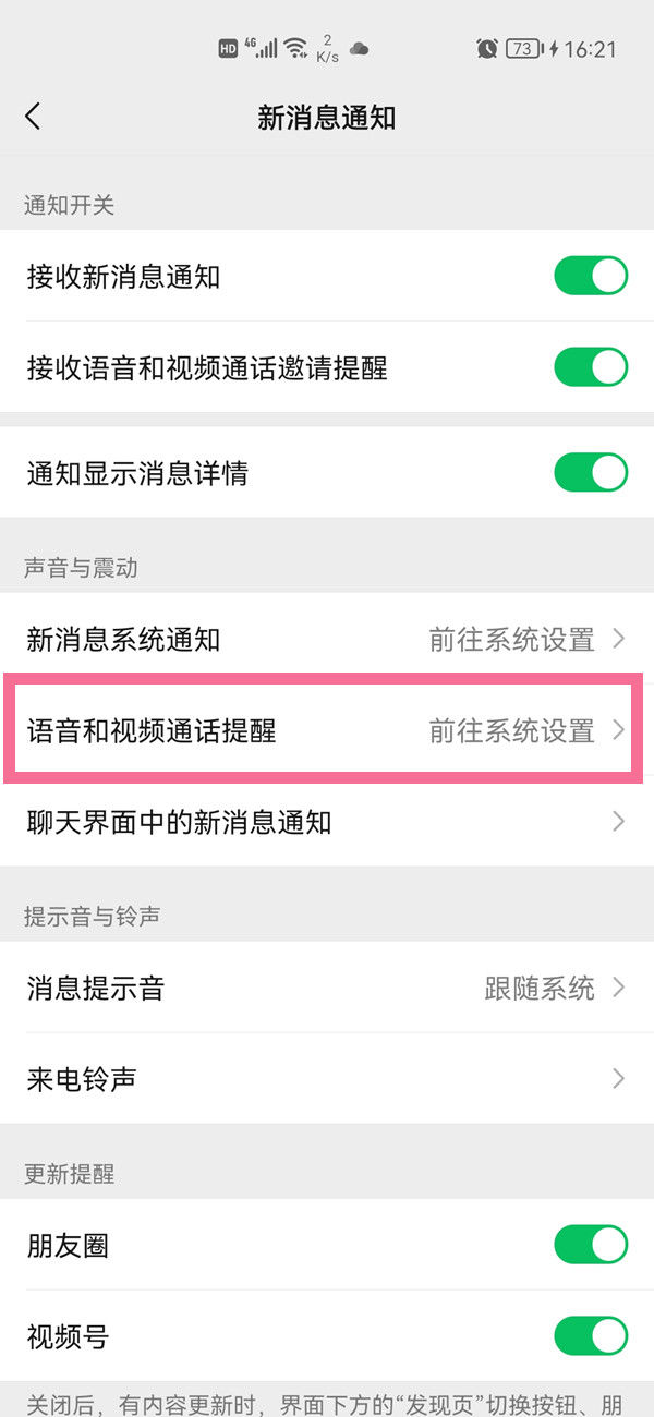 2. 点击【语音视频通话提醒】。
