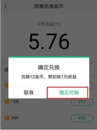 第三步,进入收益界面后,可以看到当前收益金额,点击兑换金币,如下图: