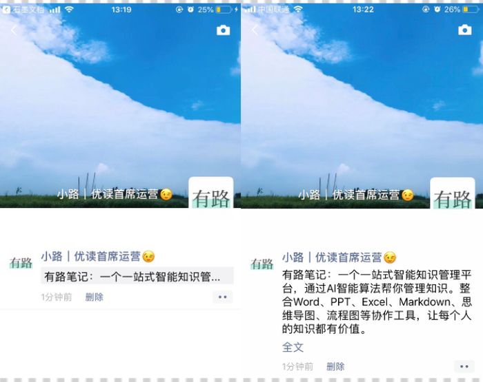 上述方法可以解决朋友圈中长文章被折叠成一行的问题。大家可以选择使用。 (下图为对比图)