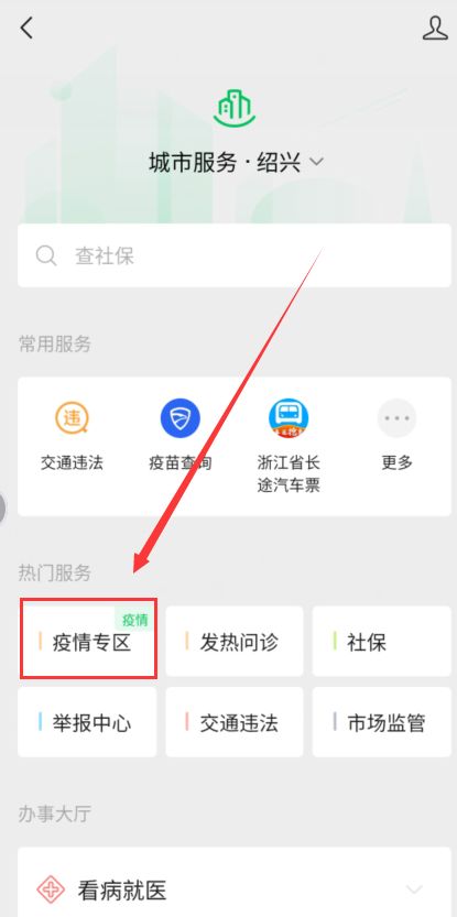 3. 单击城市服务。