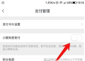 4. 在支付管理界面,点击图标位置的开关,然后根据提示输入您的支付密码,即可启用免密支付功能。