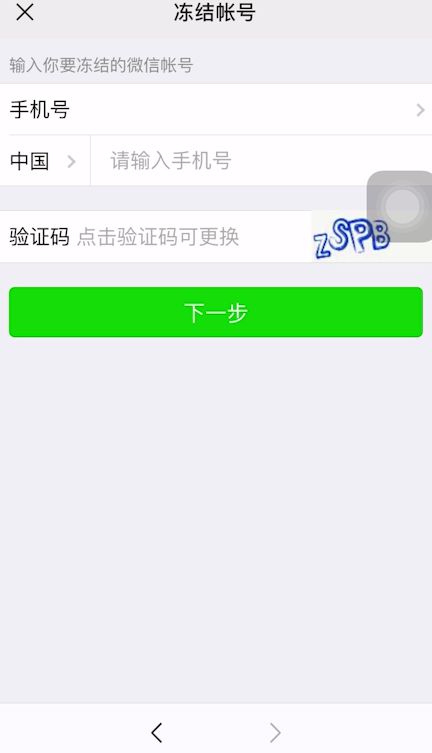 3选择“开始冻结”,输入冻结的账号和验证码,冻结微信号。