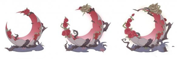背景设计中,新月与荆棘和玫瑰相结合,以漫天飞舞的花瓣为背景,展现了剑客杰瑞作为守护者的特殊地位。