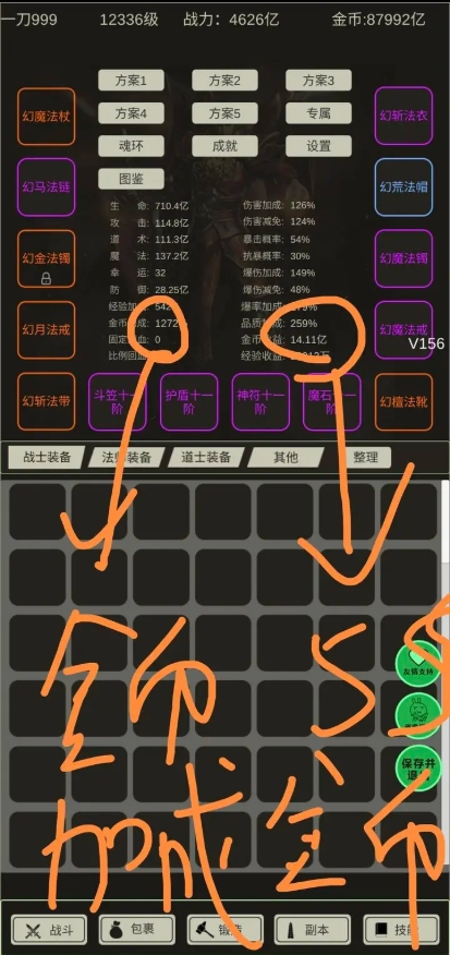 魔神挑战打出8-5-5-1-1-1,战力达到10亿。然后,套装组装完毕,火球燃烧加持,牛魔宫副本装备喷漆。 (统一强化、精炼)这里的战力达到百亿。