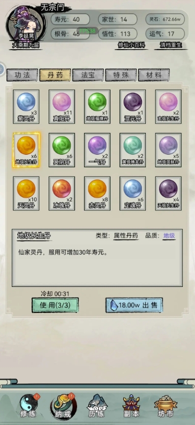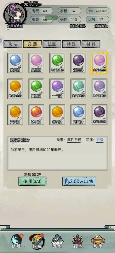 [特价] 随意出售。 【姚丹】除了十岁以下能吃补充灵气的,后期遇到灵气的,都挑出来卖。商城买丹药的顺序:长寿是运气之源,但吃丹药的顺序才是运气之源。其他人可以攒钱买晋升丹药和500万W技能。