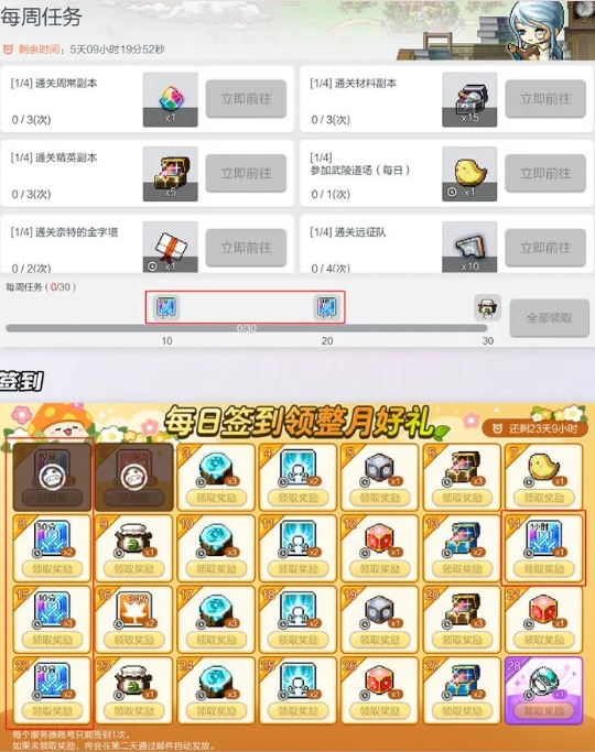 3.每周任务,十个任务可以获得30分钟,二十个任务可以获得60分钟。