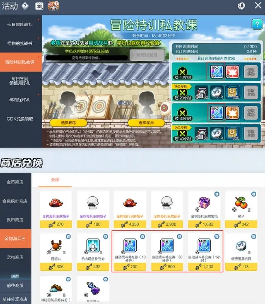 6.商店兑换,如金钩、师徒、怪物挑战书等。