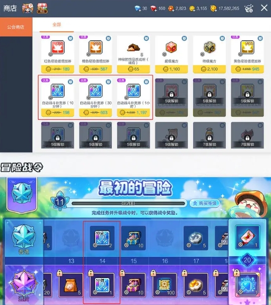 7.公会商店,3级解锁,每种类型和角色每周可购买3次。