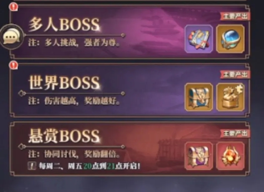 2.个人boss每天可以获得专属奖励,并且可以邀请其他人一起挑战多人boss。世界首领造成的伤害最大。