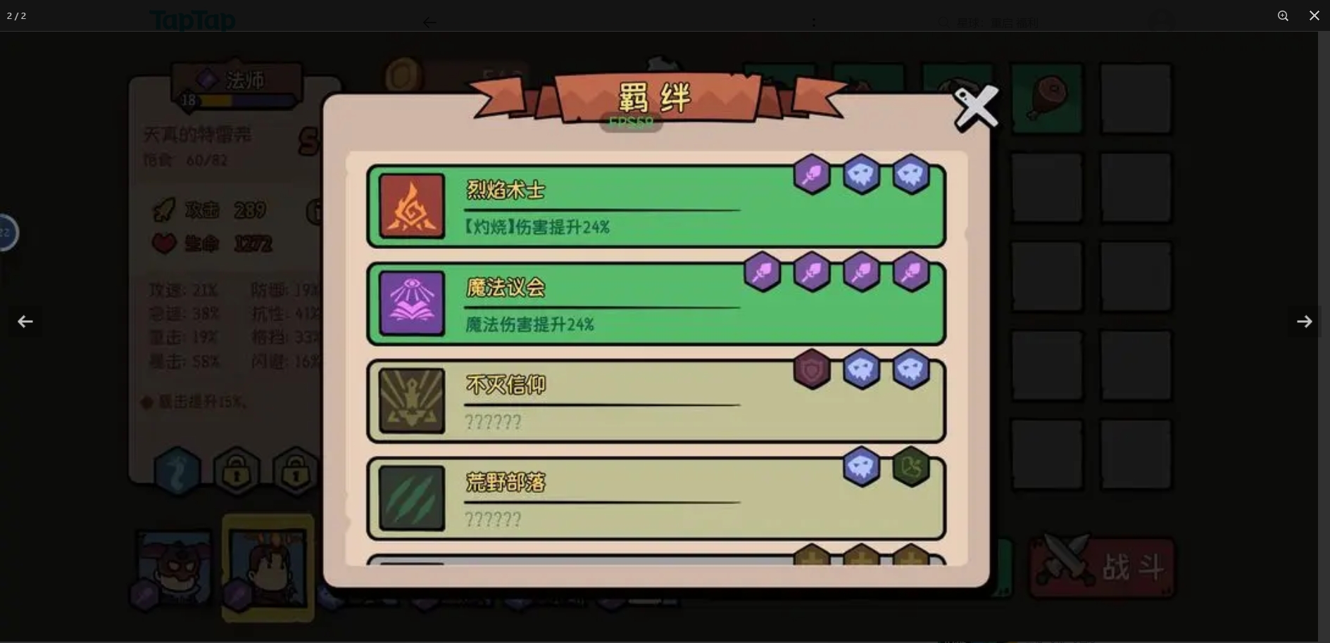 2、看开头的束缚。枷锁有非常高的加成。后面选择的英雄职业会更接近枷锁。 (建议选择4 2或4 3,四个职业的羁绊加成都很高。) 我的图中有4个法师的法师议会羁绊,还有2个牧师和1个法师羁绊。