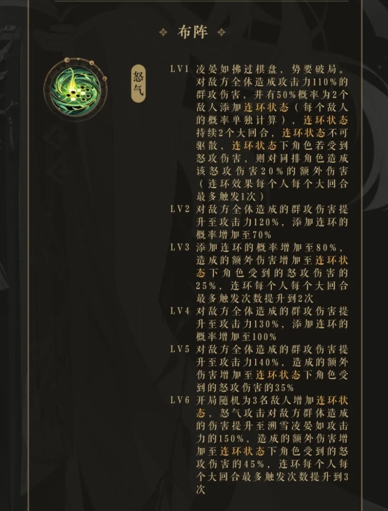 3.如果被标记的角色受到大招伤害,则会受到本方排联动伤害(最高45%狂暴攻击伤害,可触发3次)。